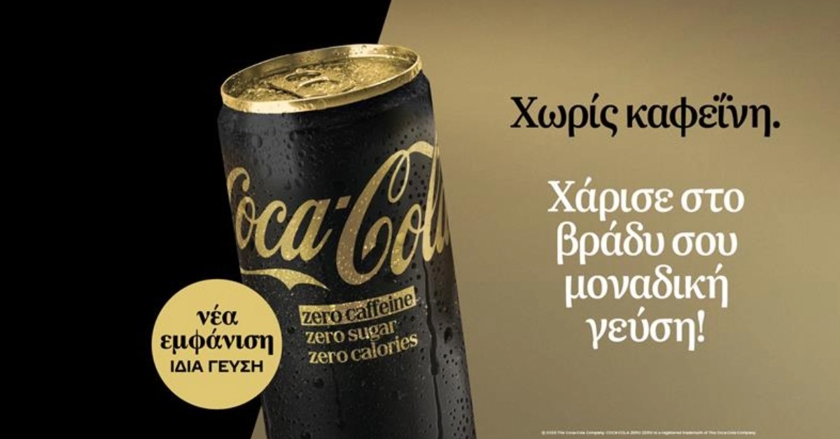 Η Coca-Cola στην Ελλάδα ανακοίνωσε σήμερα το επαναλανσάρισμα της Coca-Cola Zero Χωρίς Καφεΐνη, παρουσιάζοντας μια εκλεπτυσμένη νέα οπτική ταυτότητα και τοποθέτηση, σχεδιασμένες για να αναβαθμίσουν τις βραδινές εμπειρίες των καταναλωτών.