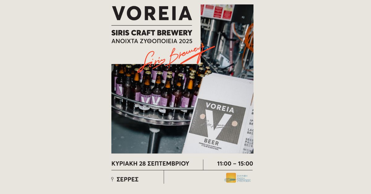 Την Κυριακή 28 Σεπτεμβρίου, η Siris Craft Brewery ανοίγει τις πόρτες της στη νέα της τοποθεσία, στο 6ο χλμ Εθνικής Οδού Σερρών – Θεσσαλονίκης, και προσκαλεί το κοινό να γνωρίσει από κοντά τη φιλοσοφία, τις αξίες και την κουλτούρα πίσω από τις αγαπημένες μπύρες VOREIA και Happy Brewers. Κατά τη διάρκεια της ημέρας θα πραγματοποιηθούν ξεναγήσεις, με κράτηση θέσης, τις ώρες 11:00, 12:00, 13:00 και 14:00, στις νέες εγκαταστάσεις της Voreia, όπου η ομάδα της Siris θα παρουσιάζει την παραγωγική διαδικασία «μέσα από τα μάτια» του ζυθοποιού. Παράλληλα, στον εξωτερικό χώρο θα προσφέρεται γευστική δοκιμή απευθείας από βαρέλι στους κωδικούς Voreia Pilsner & IPA, καθώς και σε όλες τις διαθέσιμες ετικέτες σε φιάλη.